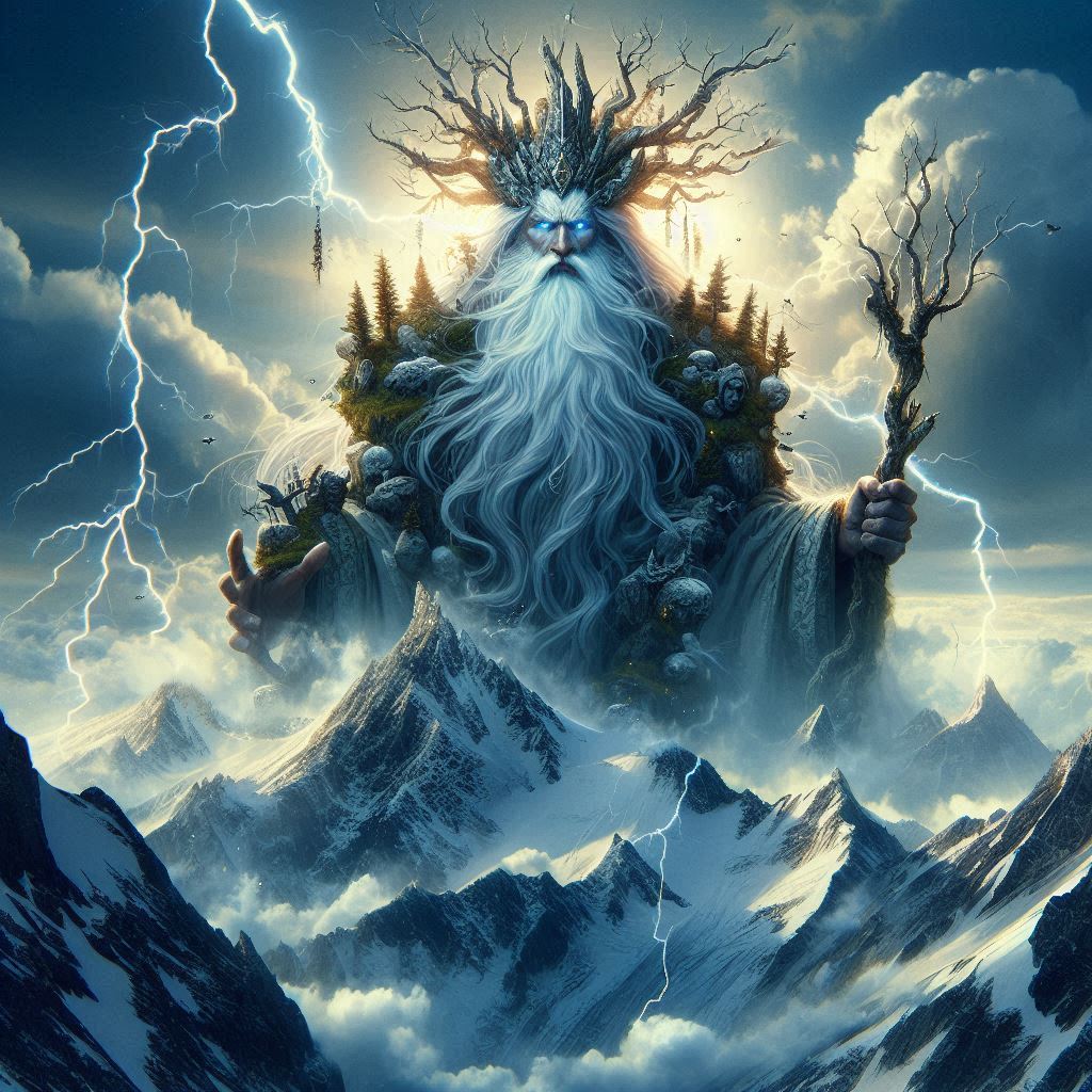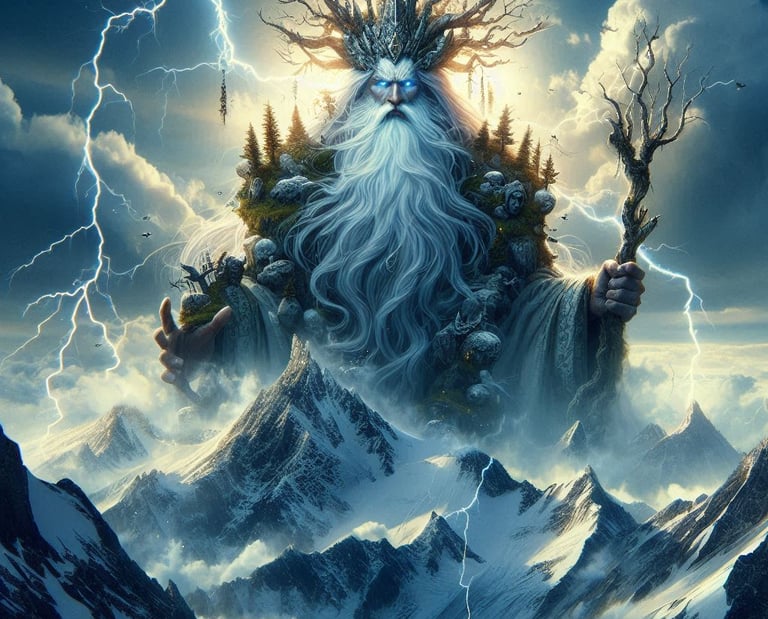 Balum, o Deus das Montanhas, nasceu do primeiro tremor que sacudiu a terra. Desde tempos imemoriais, Balum tem sido o guardião das montanhas, protegendo suas alturas majestosas e seus vales profundos. Ele é reverenciado por sua força e resistência, sendo uma figura de estabilidade e poder.