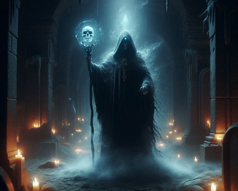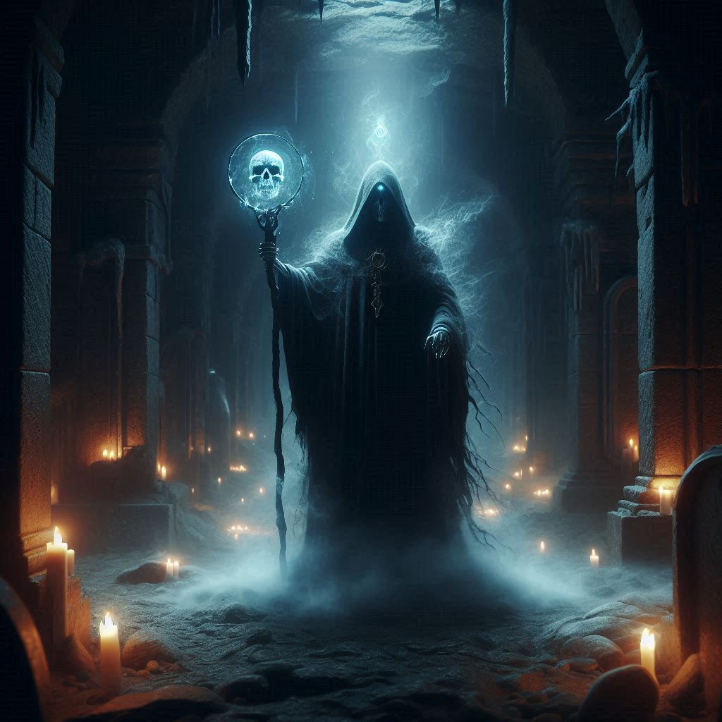 Finbetur, o Deus da Morte, nasceu do primeiro suspiro de um ser vivo que deixou este mundo. Desde tempos imemoriais, Finbetur tem sido o guardião das almas dos mortos, guiando-as para o além e garantindo que o ciclo da vida e da morte seja mantido. Ele é reverenciado por sua sabedoria e justiça, sendo uma figura de respeito e temor.