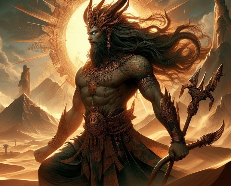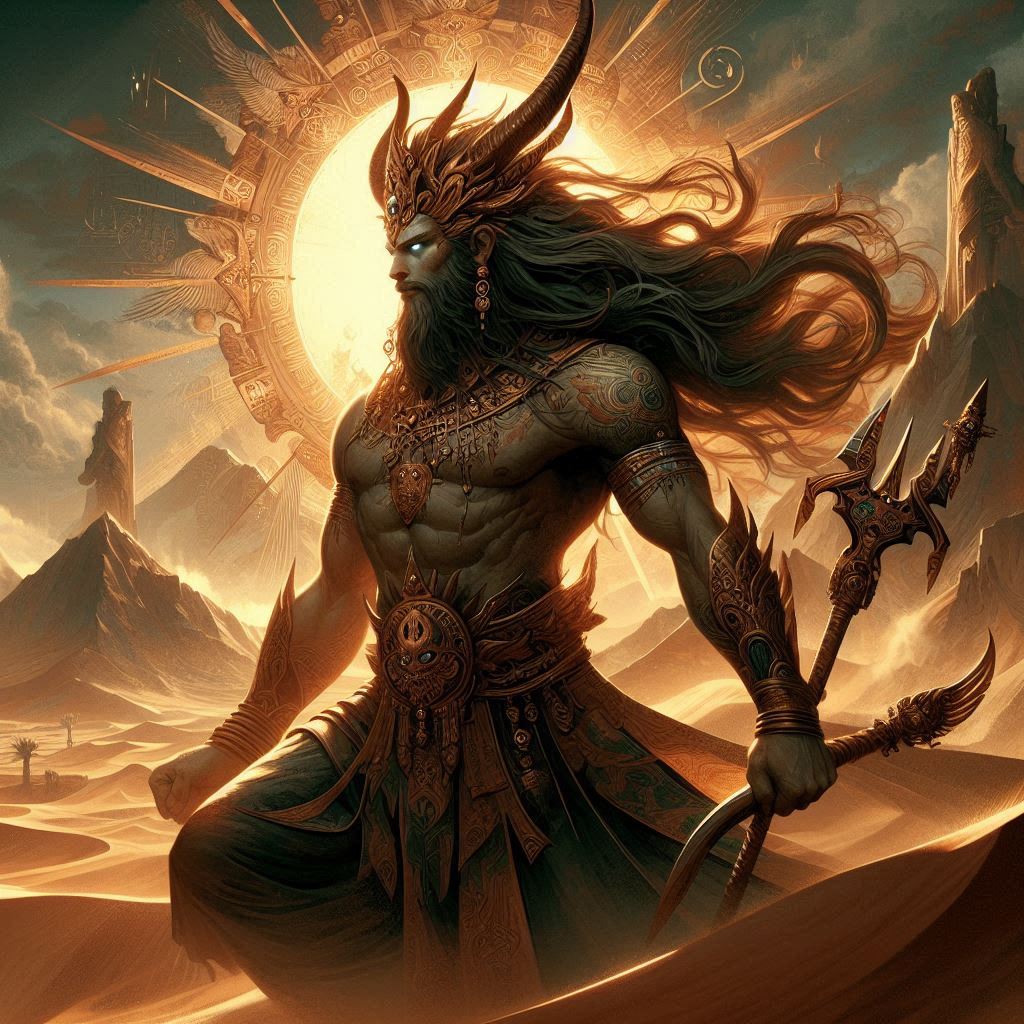 Reyhan, o Deus dos Desertos, nasceu do primeiro grão de areia que foi soprado pelo vento. Desde tempos imemoriais, Reyhan tem sido o guardião das vastas e áridas terras desérticas. Ele é reverenciado por sua resiliência e sabedoria, sendo uma figura de mistério e poder.
