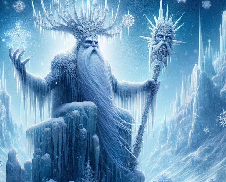 Tilki, o Deus do Gelo, nasceu do primeiro floco de neve que caiu sobre o mundo. Desde tempos imemoriais, Tilki tem sido o guardião das terras geladas e das montanhas cobertas de neve. Ele é reverenciado por sua serenidade e poder implacável, sendo uma figura de pureza e força.