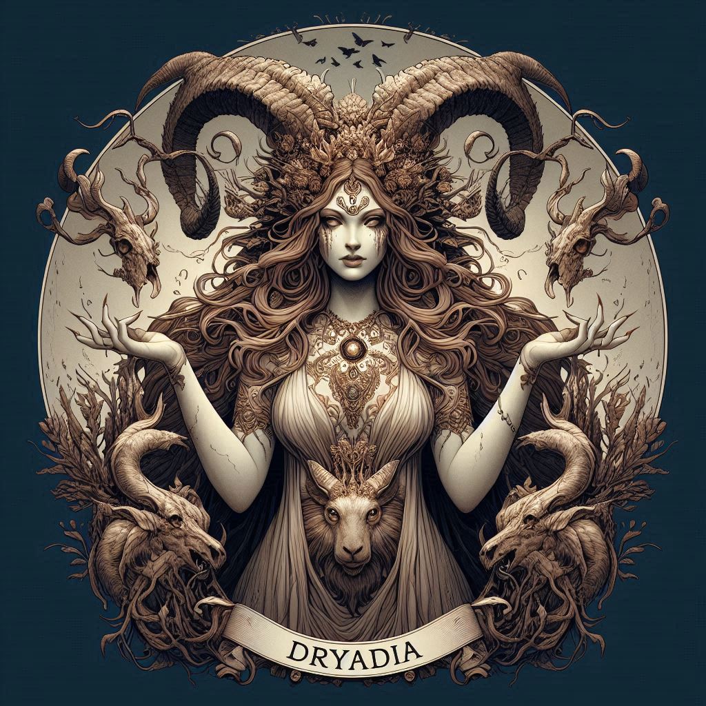Dryadia é uma deusa antiga. Ela é a protetora dos espíritos da fauna, cuidando de todas as criaturas que habitam as florestas e campos. Dryadia é frequentemente vista como uma figura maternal, zelando pelo bem-estar dos animais e garantindo que o equilíbrio natural seja mantido. Ela é reverenciada por druidas e guardiões da natureza, que a veem como a personificação da vida selvagem.