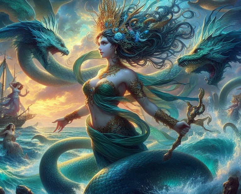 Mãe das Criaturas Marinhas: Thalassa é considerada a mãe de muitas criaturas marinhas, incluindo as sereias e os tritões, que a servem fielmente e ajudam a proteger os oceanos.